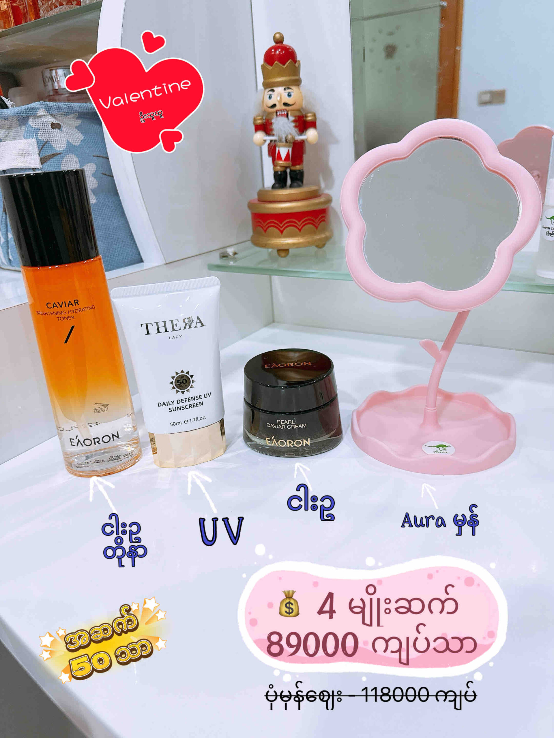 Valentine Set (ငါးဥတိုနာ+ငါးဥ cream+Uv နေကာ+Aura မှန်)